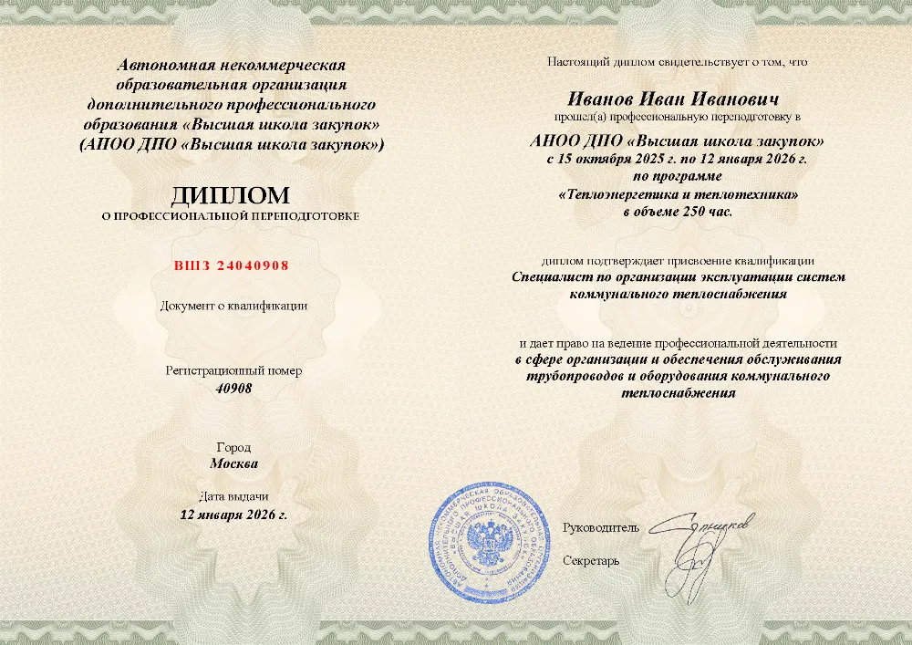 Программа профессиональной переподготовки (250 часов) для специалистов по теплоэнергетике в в Екатеринбурге. Освойте теоретические основы, техническую эксплуатацию и безопасность тепловых энергоустановок, правила охраны труда, пожарной безопасности и аналитику надежности объектов.
